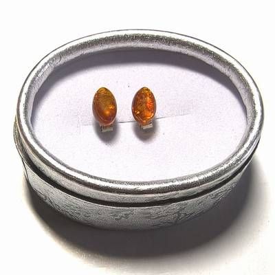 Cercei din chihlimbar cu argint - forma ovala - Detalii